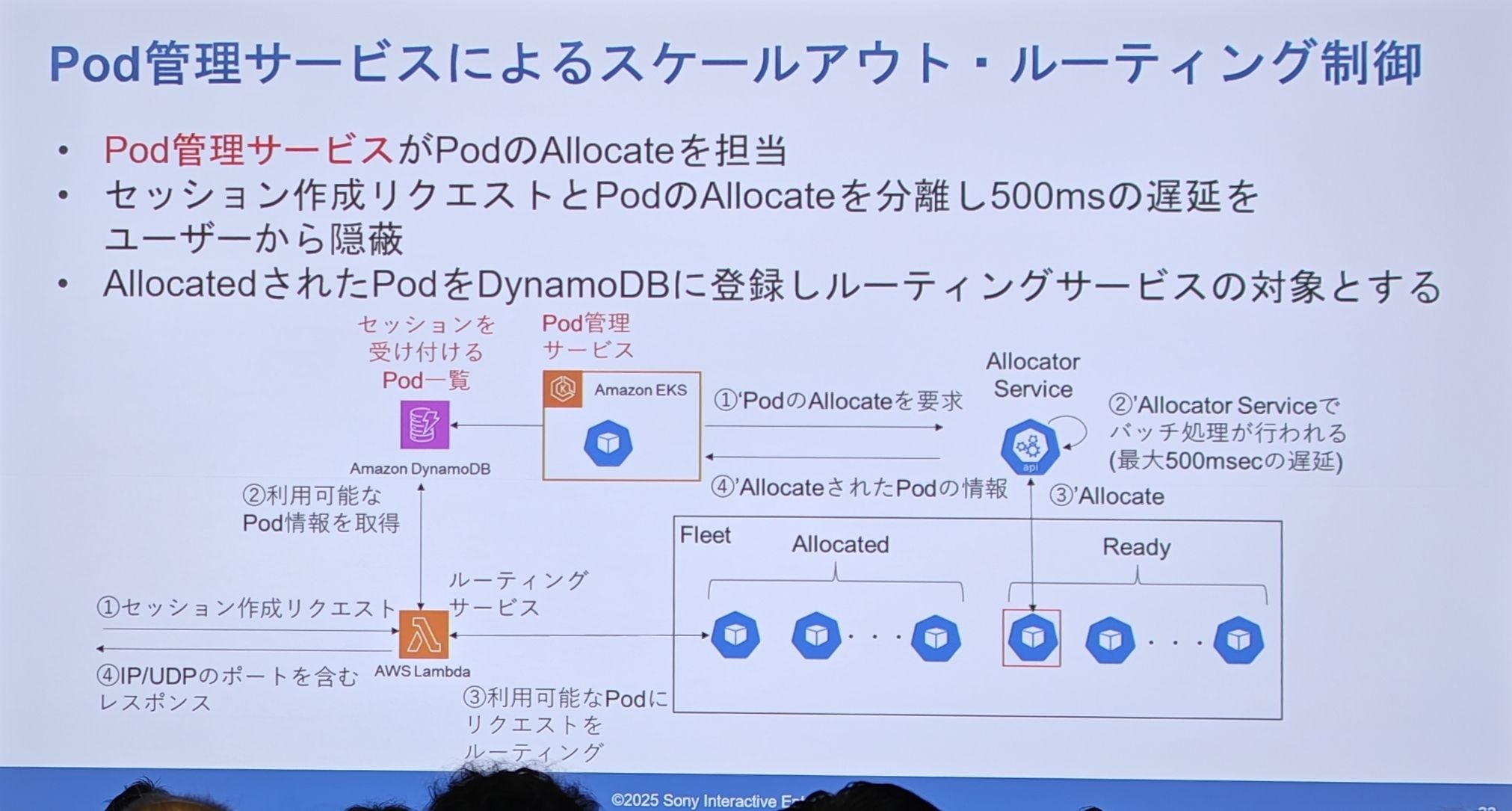 - 而那个耗时 500ms 的分配操作,由“Pod 管理服务”在后台提前、主动地完成,并把分配好的 Pod 信息注册到 DynamoDB 的列表中。