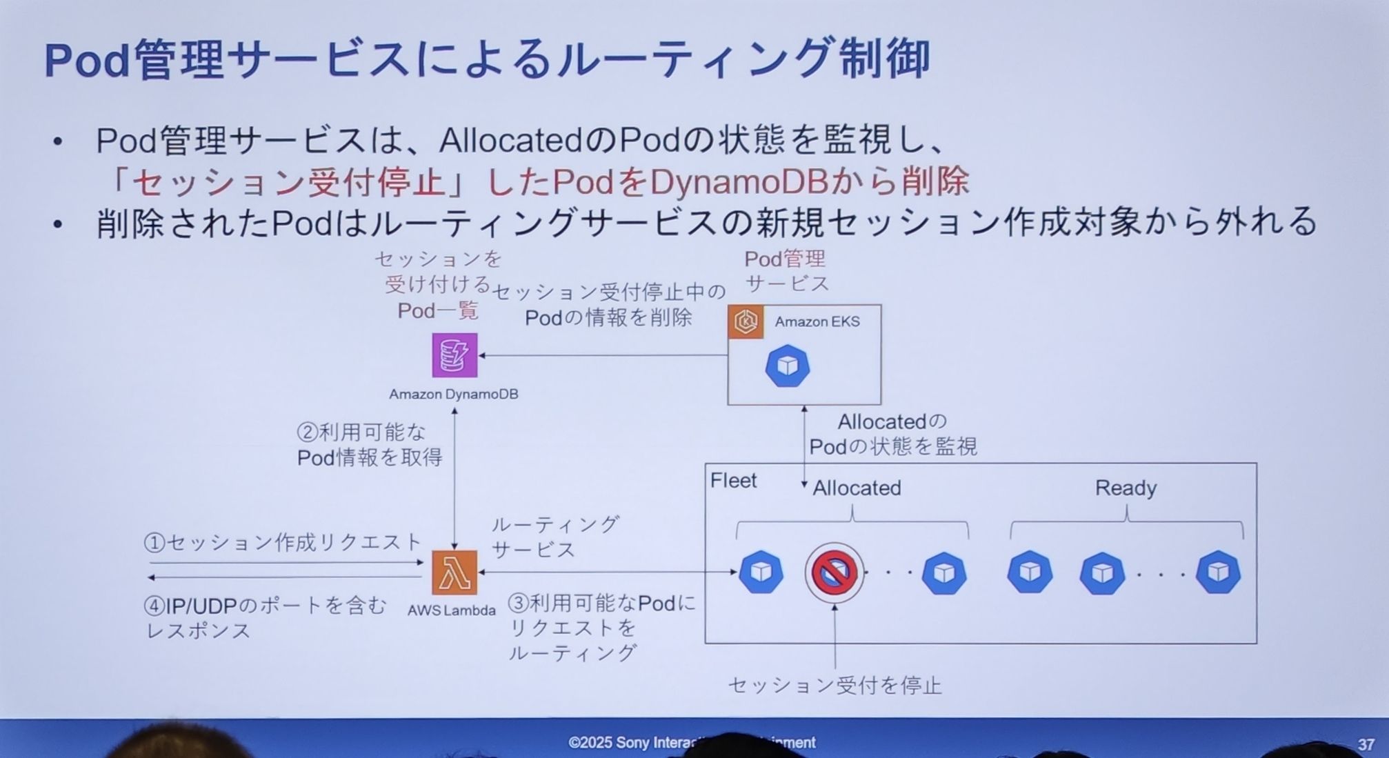 Allocated状态的 Pod 需要停止接收会话时(比如因为它满了,或者被选中为缩容对象),它会直接从 DynamoDB 的可用列表中,删除这个 Pod 的信息。 - 一旦信息被删除,路由服务(Lambda)在查询 DynamoDB 时就再也找不到这个 Pod 了,自然也不会把任何新的会话请求发给它。